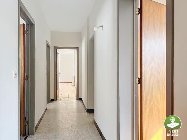 Au 2e étage d'un immeuble en plein centre de Ciney, appartement de +/- 88m². Il se compose d'un hall d'entrée, un séjour avec une cuisine équipée, un WC, une chambre avec une salle de douche attenante, une chambre et une salle de bain. Chauffage central au gaz de ville, compteur électricité individuel. Provision de charges 15€/personne/mois pour l'eau. A proximité immédiate des transports, commerces et accès autoroutiers (E411 & N4). Libre immédiatement. Infos uniquement par mail et visites sur rendez-vous.