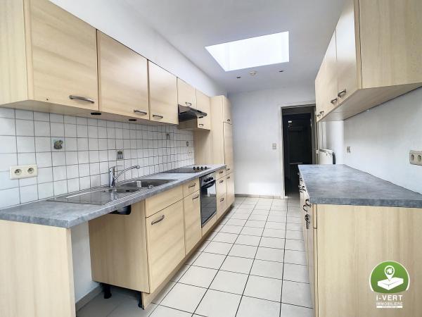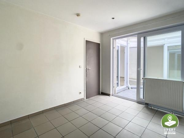 Ciney, au rez de chaussée de la résidence "Collégiale", un appartement de 108m² très lumineux comprenant: un hall d'entrée, un séjour ouvert sur un patio, une cuisine équipée, deux chambres, une salle de douche, une buanderie, une toilette et un garage. PEB E, chaudière individuelle gaz de ville, compteur électrique bi horaire. Provisions de charges 30 € (entretien chaudière, entretien des parties communes, électricité des parties communes). Garantie locative: 2 mois de loyer bloqués sur compte Korfine. Libre au 1er octobre.  Visites et renseignement à l'agence.
