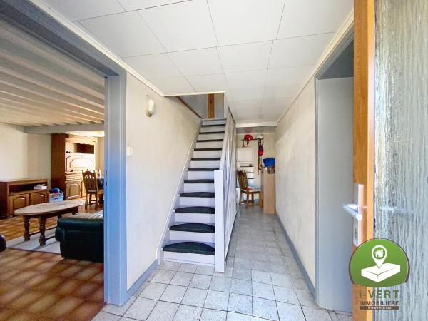 Maison 3 chambres située sur un terrain de 3 ares 69 centiares, le tout avec une agréable vue sur l'arrière. Elle se compose au rez-de-chaussée: un salon, un hall d'entrée, une salle à manger/cuisine et un garage.
