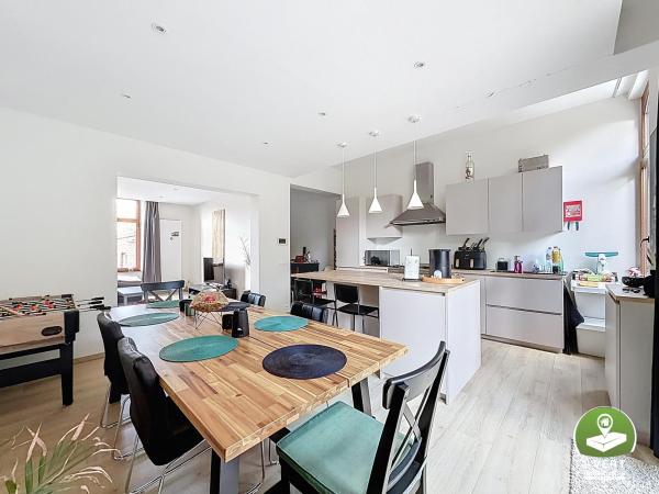 L'appartement, totalement rénové en 2022, est actuellement loué 942,33€/mois et dispose de son entrée privative. A l'étage: un hall, un wc, une chambre, une cuisine totalement équipée, un salon et une salle à manger donnant sur un balcon.