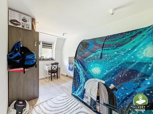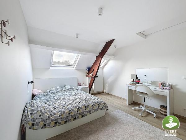 Au deuxième étage: un hall, deux chambres et une salle de bain. Le logement bénéficie de son compteur électrique bihoraire.